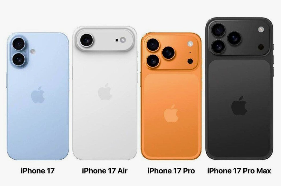 iPhone 17 Air — в черном, серебристом, золотом и голубом.