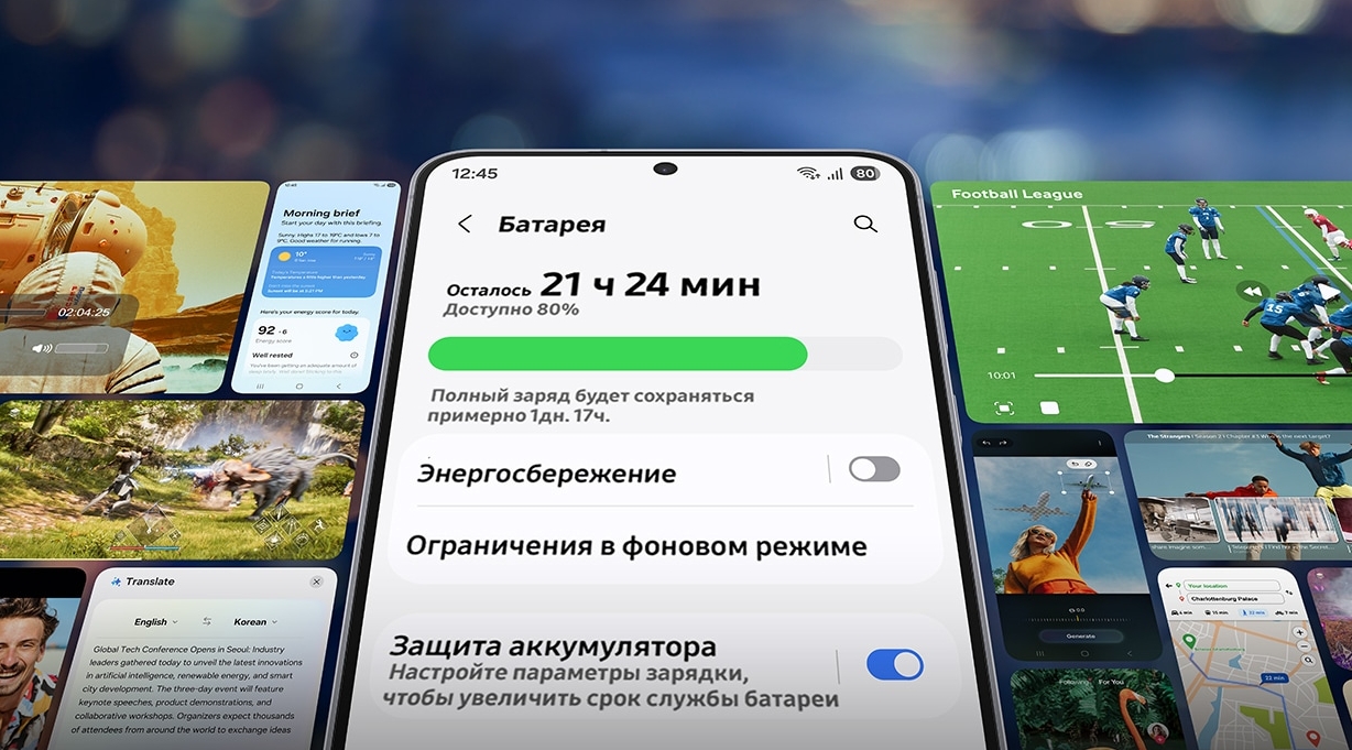 Samsung Galaxy S25 FE оснащен аккумулятором на 4900 мАч и поддерживает быструю зарядку мощностью 45 Вт. В реальном использовании смартфон уверенно выдерживает рабочий день, а за 30 минут набирает около 65% заряда.