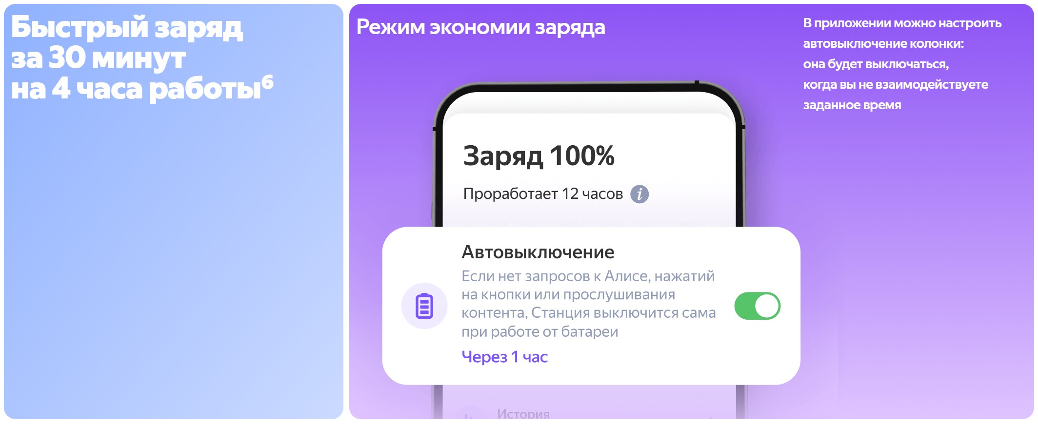 Для экономии энергии реализовано автоотключение. Если колонкой не пользоваться, она сама засыпает. Таймер можно настроить в приложении.