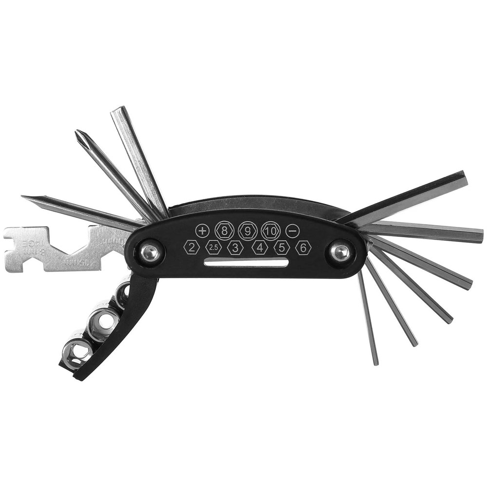 Этот набор велоключей универсален и подойдет для ремонта велосипедов любой модели. Благодаря своему компактному размеру (в сложенном виде 90 х 48 х 26 мм) и легкому весу (200 гр) мультитул набор ключей для велосипеда не займет много места и помещается в любой сумке или чехле. Изготовленный из прочной высококачественной нержавеющей стали велосипедный набор шестигранников, ключей (16 в 1) рассчитан на устранение неполадок любого типа и подойдет для велосипедистов, ездящих на короткие и длинные дистанции. Универсальный мультитул велоключ 16в1 имеет максимальную компактность и большой функционал.