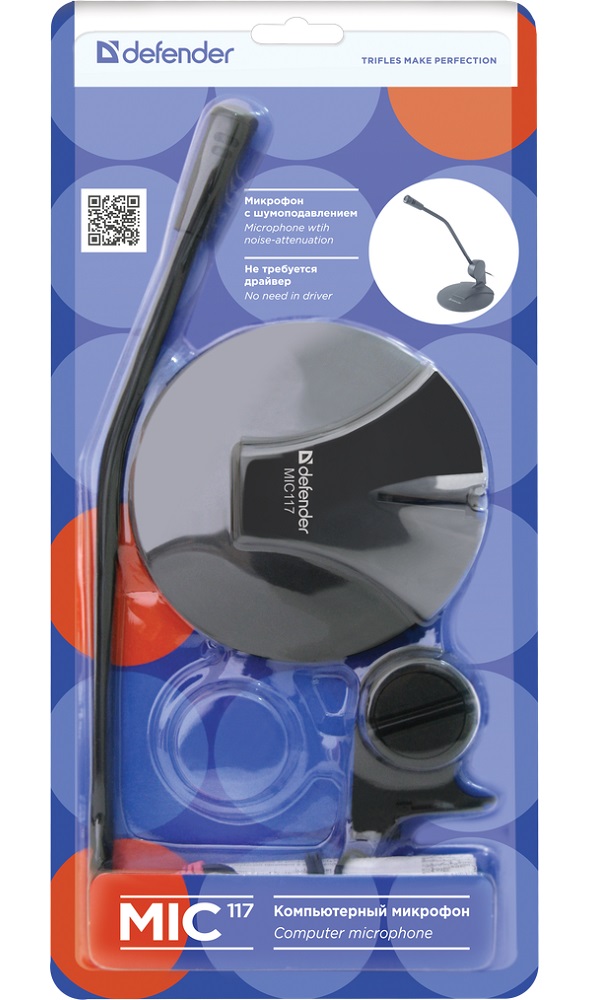 Микрофон Defender MIC-117 проводной настольный 1,5м черный