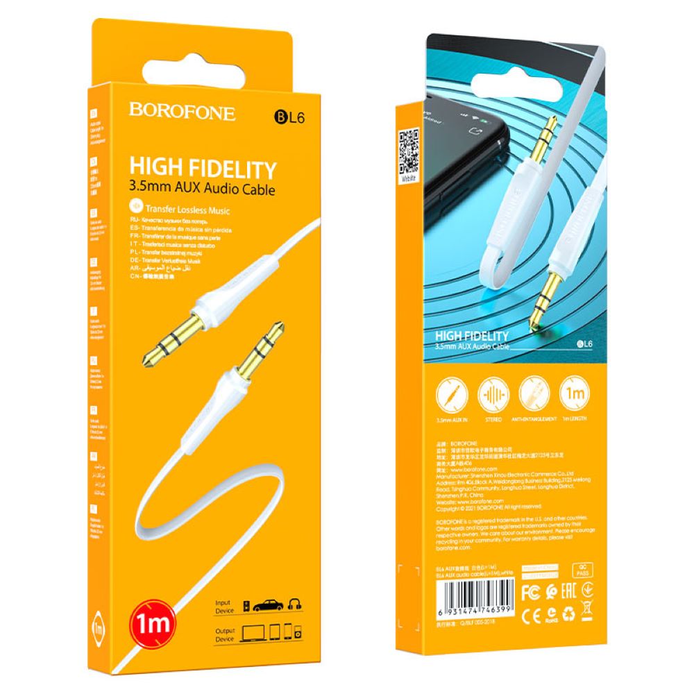 Кабель 3.5mm Jack (папа) - 3.5mm Jack (папа) Borofone BL6 1м белый