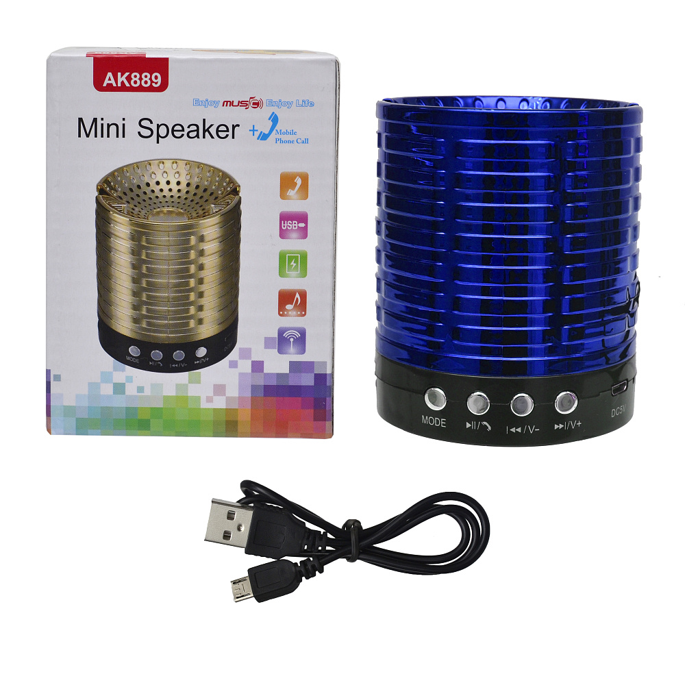 Колонка AK889 (Bluetooth/MicroSD/USB/FM/AUX) синяя