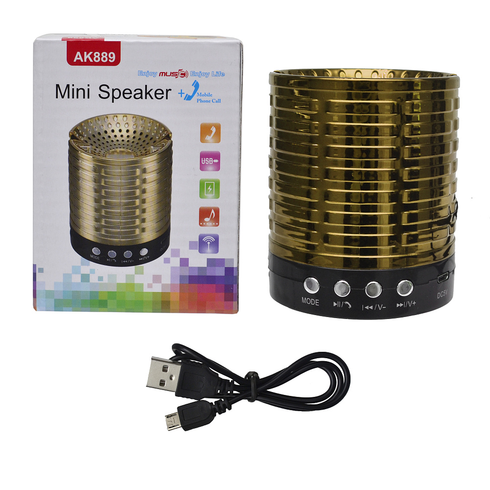 Колонка AK889 (Bluetooth/MicroSD/USB/FM/AUX) золото