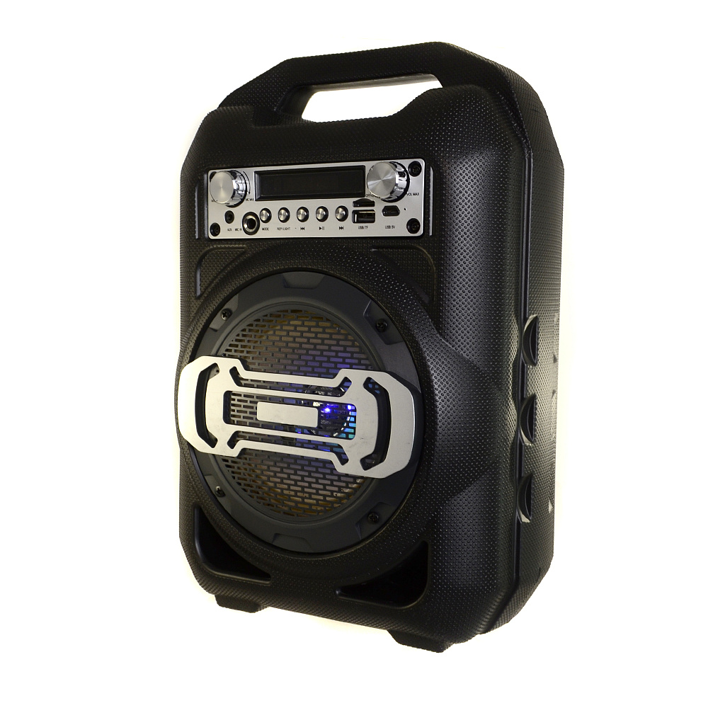 Портативная акустическая система с Bluetooth, FM-радио и удобной ручкой для переноски. Звуание колонки по-настоящему громкое и насыщенное. Портативная акустическая система обладает широчайшим диапазоном возможностей. Она может воспроизводить музыку с карт памяти microSD и USB Flash, поддерживает проводное соединение с источником звука, а еще способна подключаться по Bluetooth к смартфонам и планшетам и проигрывать плейлист с мобильных устройств. Кроме того, у нее есть FM-радио, который принимает сигнал на 87.5 - 108 МГц. Скучно точно не будет!