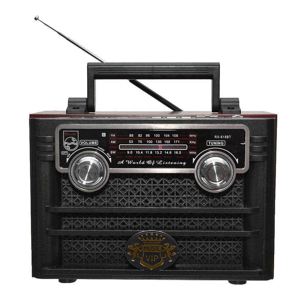 Всеволновой радиоприёмник торговой марки "GOLON" RX-618. Принимает трансляции радиостанций в FM,TV,AM,SW (УКВ,СВ, КВ) диапазонах, а также воспроизводит аудиофайлы в формате MP3/WMA (музыка и аудиокниги). Радиоприемник "GOLON" RX-618 имеет встроенный фонарик. Отличный выбор для дома и дачи!