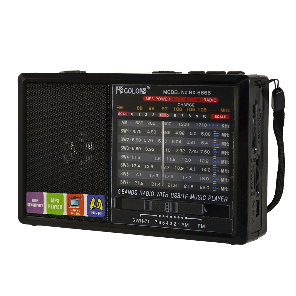 Компактный и недорогой радиоприемник. Эта небольшая по своим размерам модель RX BT6666 приятно порадует Вас своими функциональными возможностями. В первую очередь отметим наличие USB выхода, через который Вы сможете подключать флэшку и слушать с нее композиции. Так же радио оборудовано карт ридером, который считает файлы хранящиеся на SD карте. Другой особенностью данной модели является фонарик, который пригодится Вам будь до при отдыхе на природе или на даче.
