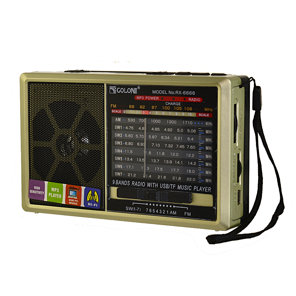 Компактный и недорогой радиоприемник. Эта небольшая по своим размерам модель RX BT6666 приятно порадует Вас своими функциональными возможностями. В первую очередь отметим наличие USB выхода, через который Вы сможете подключать флэшку и слушать с нее композиции. Так же радио оборудовано карт ридером, который считает файлы хранящиеся на SD карте. Другой особенностью данной модели является фонарик, который пригодится Вам будь до при отдыхе на природе или на даче.