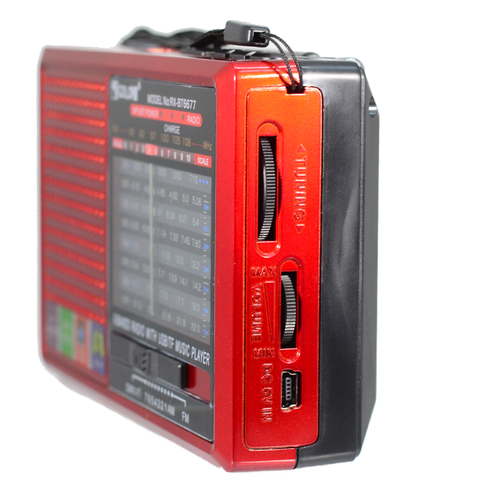 Компактный радиоприемник RX BT6677 - имеется фонарик в боковой части приемника, наличие USB выхода для подключения флешек, наличие картридера, способного читать файлы с SD карт, наличие ремешка для лучшего удержания прибора. Данный радиоприемник поможет Вам скрасить свой досуг как при отдыхе на природе, даче, так и при прослушивании на рабочем месте.