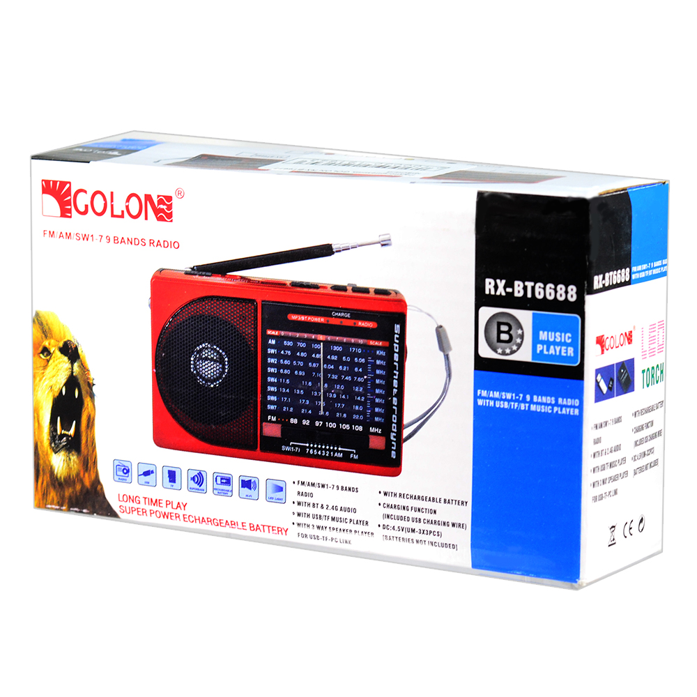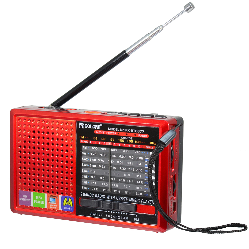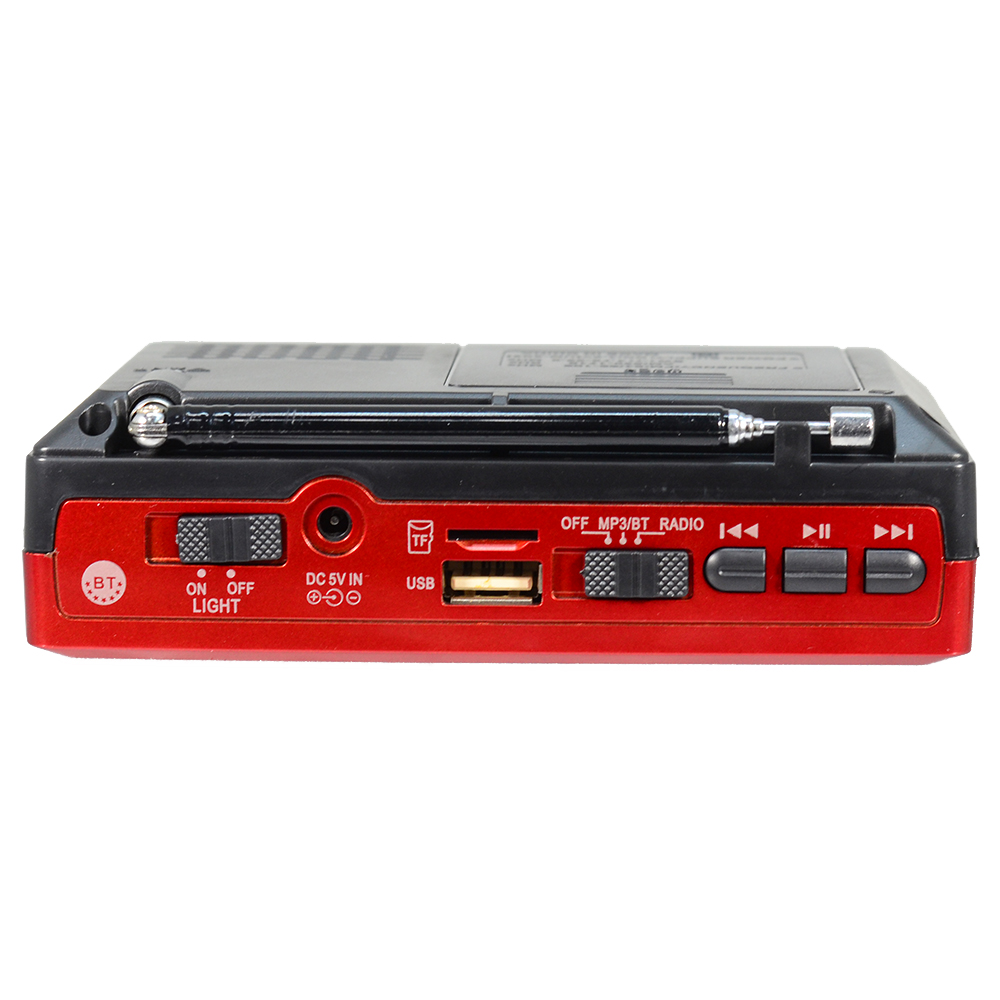 Компактный радиоприемник RX BT6677 - имеется фонарик в боковой части приемника, наличие USB выхода для подключения флешек, наличие картридера, способного читать файлы с SD карт, наличие ремешка для лучшего удержания прибора. Данный радиоприемник поможет Вам скрасить свой досуг как при отдыхе на природе, даче, так и при прослушивании на рабочем месте.