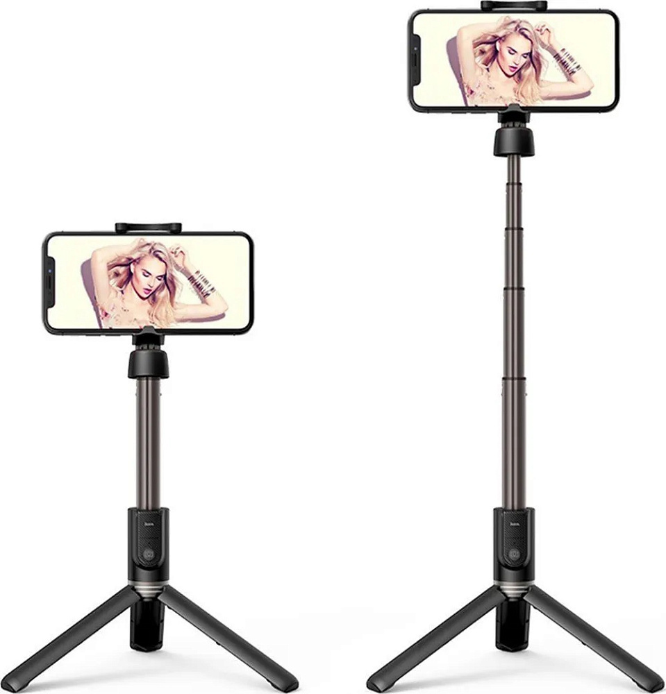 Hoco K11 - металлический трипод, легкий и стабильный. Дистанция беспроводной съемки до 10 м, съемный пульт управления. Размером с мобильный телефон, просто складывается. Легко хранить и носить в сумке.