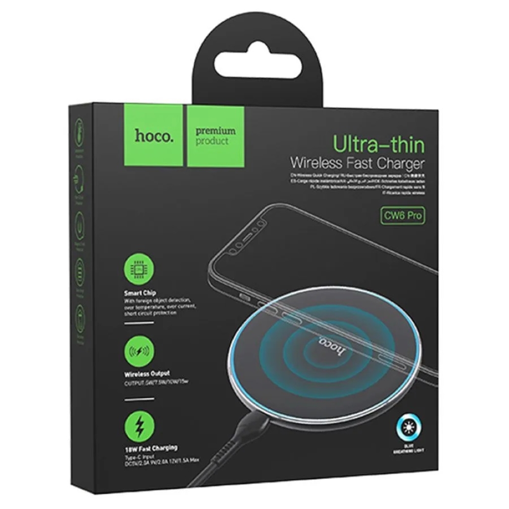 Беспроводное зарядное устройство Hoco CW6 Pro поддерживает мощность зарядки до 15W, что обеспечивает быструю и эффективную зарядку совместимых устройств. Оно оснащено разъемом Type-C для подключения к источнику питания, что делает его современным и удобным в использовании. Черный цвет придает устройству стильный и универсальный вид, который подойдет для любого интерьера. Это зарядное устройство идеально подходит для зарядки смартфонов и других гаджетов, поддерживающих беспроводную зарядку, обеспечивая комфорт и простоту в использовании.